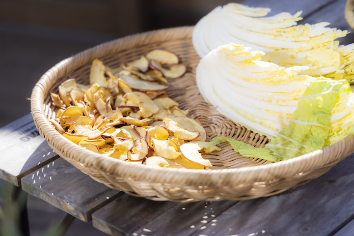 例えば、食材を購入して半分はフレッシュの状態で冷蔵庫へ、もう半分はカットして天日干しにして長期保存!そうしたら週の前半はフレッシュ野菜を楽しんで、後半はドライフードをそのままスープにしたり戻してメイン料理にしたりと、食材を無駄にすることなく使い切れますね。