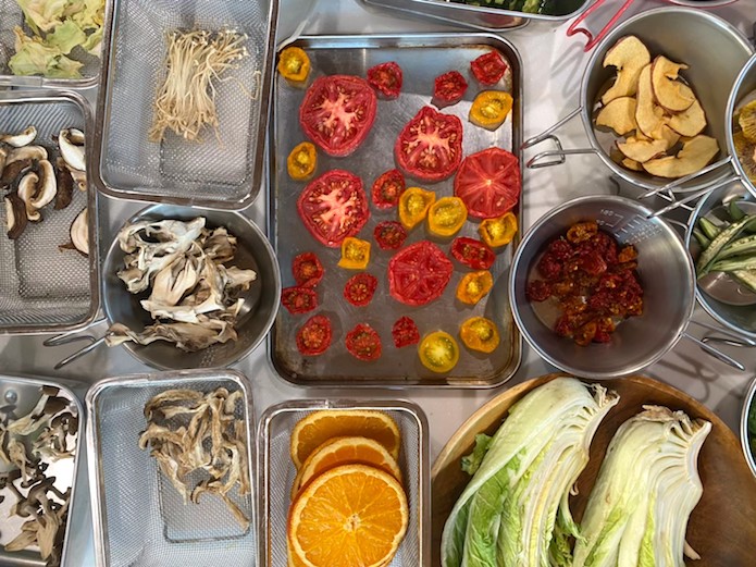 例えば、食材を購入して半分はフレッシュの状態で冷蔵庫へ、もう半分はカットして天日干しにして長期保存!そうしたら週の前半はフレッシュ野菜を楽しんで、後半はドライフードをそのままスープにしたり戻してメイン料理にしたりと、食材を無駄にすることなく使い切れますね。